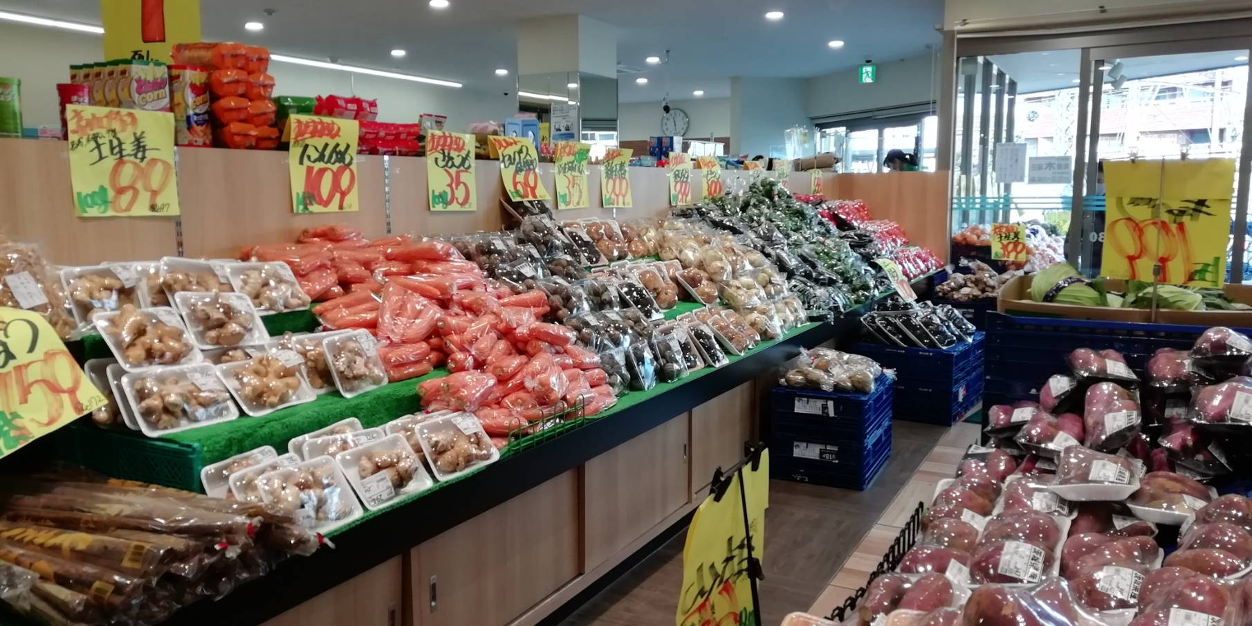 入り口前にも並べてありますが、入ってすぐに野菜・果物が売っています。