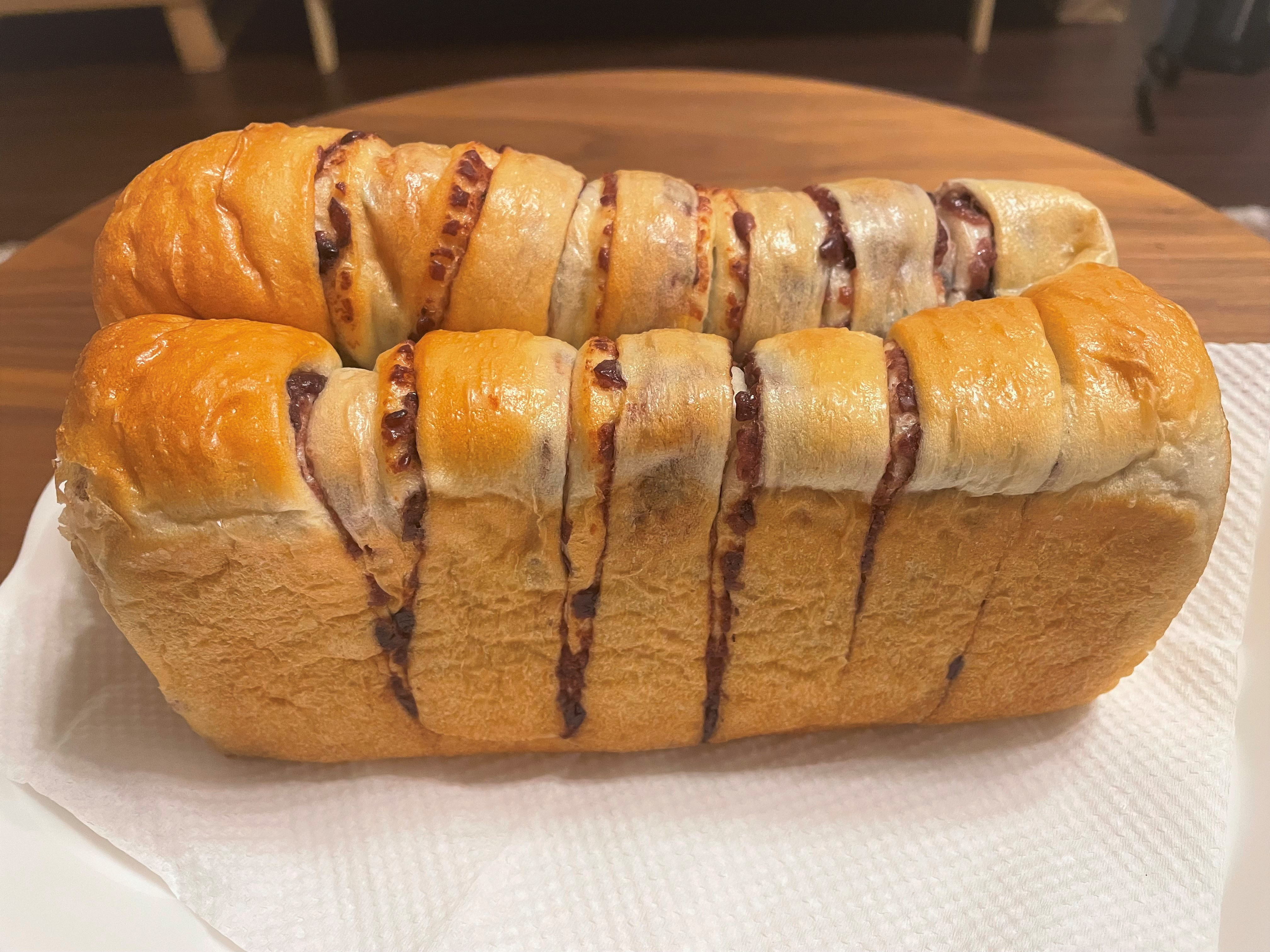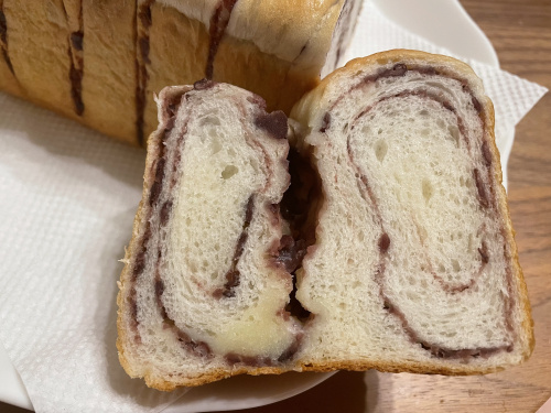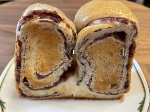 うず巻状に成形した小豆は十勝産小豆を使用し、バターの風味がきいた食パンです。